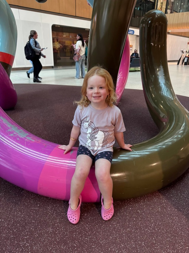 “We got sent to the Royal Children’s [Hospital] to get it double checked and then sure enough, after a brain scan, it showed that there was a mass on her head of nine centimetres by seven centimetres.”